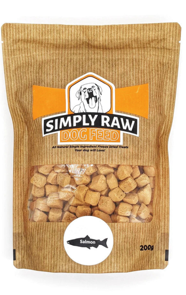 Each treat is freeze-dried for long lasting freshness, with bags weighing 200g. Pick up a bag with your next order of Simply Raw Dog Feed!